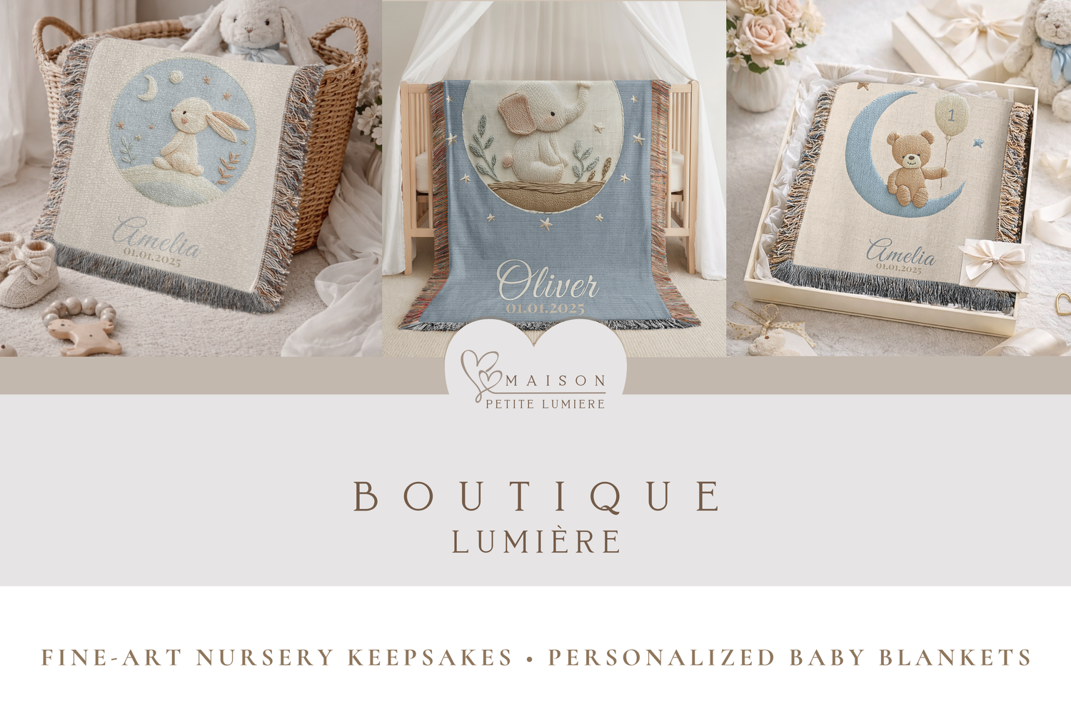 Personalized baby blankets with timeless designs and gentle colors – for newborns and thoughtful gifting.